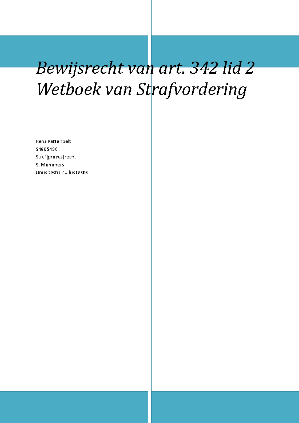Unus testis strafrecht essay Bewijsrecht van art. 342 lid 2 Wetboek van Strafvordering Rens