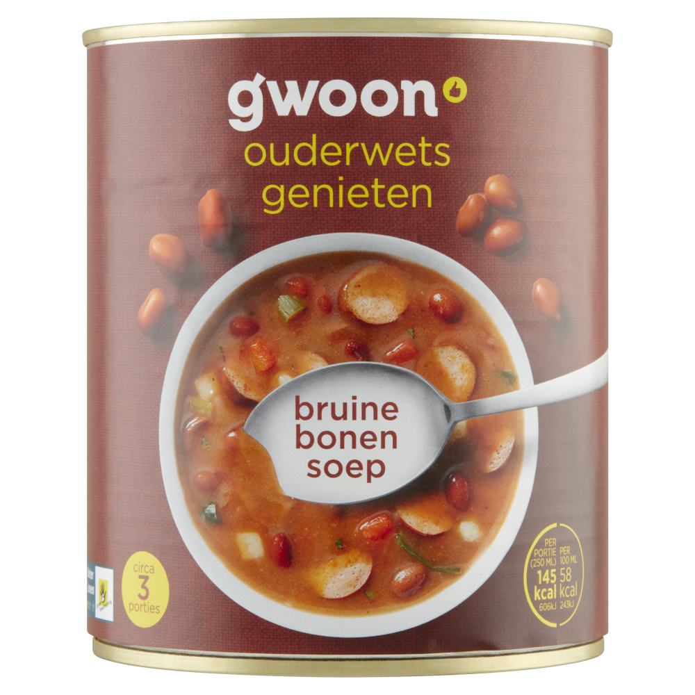 Ingrediënten bruine bonensoep. Met deze ingrediënten heb je meer dan voldoende soep voor 4 personen. De kans bestaat dat je nog het een en ander overhoudt. Bruine bonensoep kan je in ieder geval prima invriezen dus dan heb je een snel hapje klaar voor een andere dag. 400 gram gedroogde bruine bonen; 1 blikje zwarte bonen; 1,2 liter water; 2.