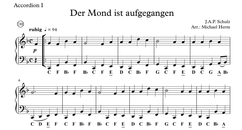 Der Mond ist aufgegangen (Accordion Duo) Akkordeon Noten