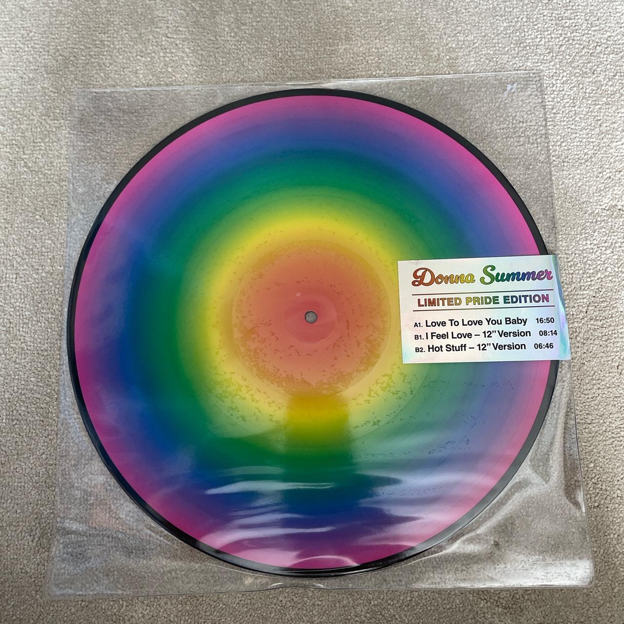 Description. //UMR//. £24.99 - 1×12″, Super Limited Edition Rainbow Coloured Picture Disc Vinyl. 3 iconic tracks from the disco queen: 'love to love you baby', 'i feel love' & 'hot stuff', all on one radiant rainbow colour picture disc. Tracklisting: Love to love you baby (16:50) I feel love (06:46)