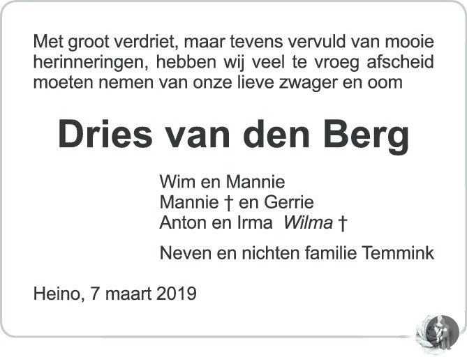 Dries van den Berg 07032019 overlijdensbericht en condoleances Mensenlinq.nl