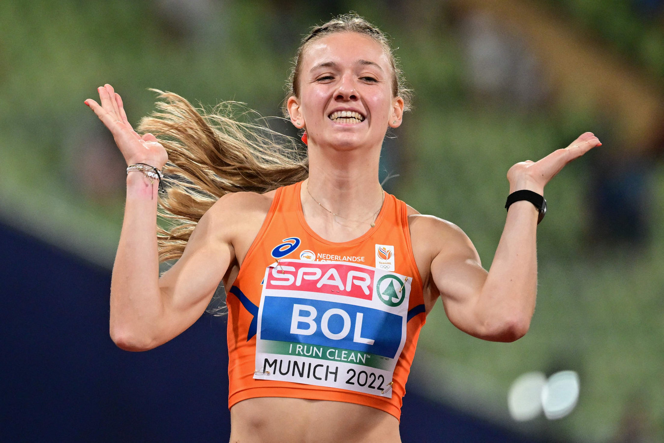 Femke Bol has won the world title in the 400 meter hurdles with a time of 51.70 seconds at the World Athletic Championships in Berlin. The 23-year-old took gold, the Dutch team's first at the tournament. The Dutch athletes have won two other medals. Anouk Vetter took the bronze in the heptathlon, and Sifan Hassan snatched the bronze in the 1,500 meter. National team coach Laurent Meuwly.