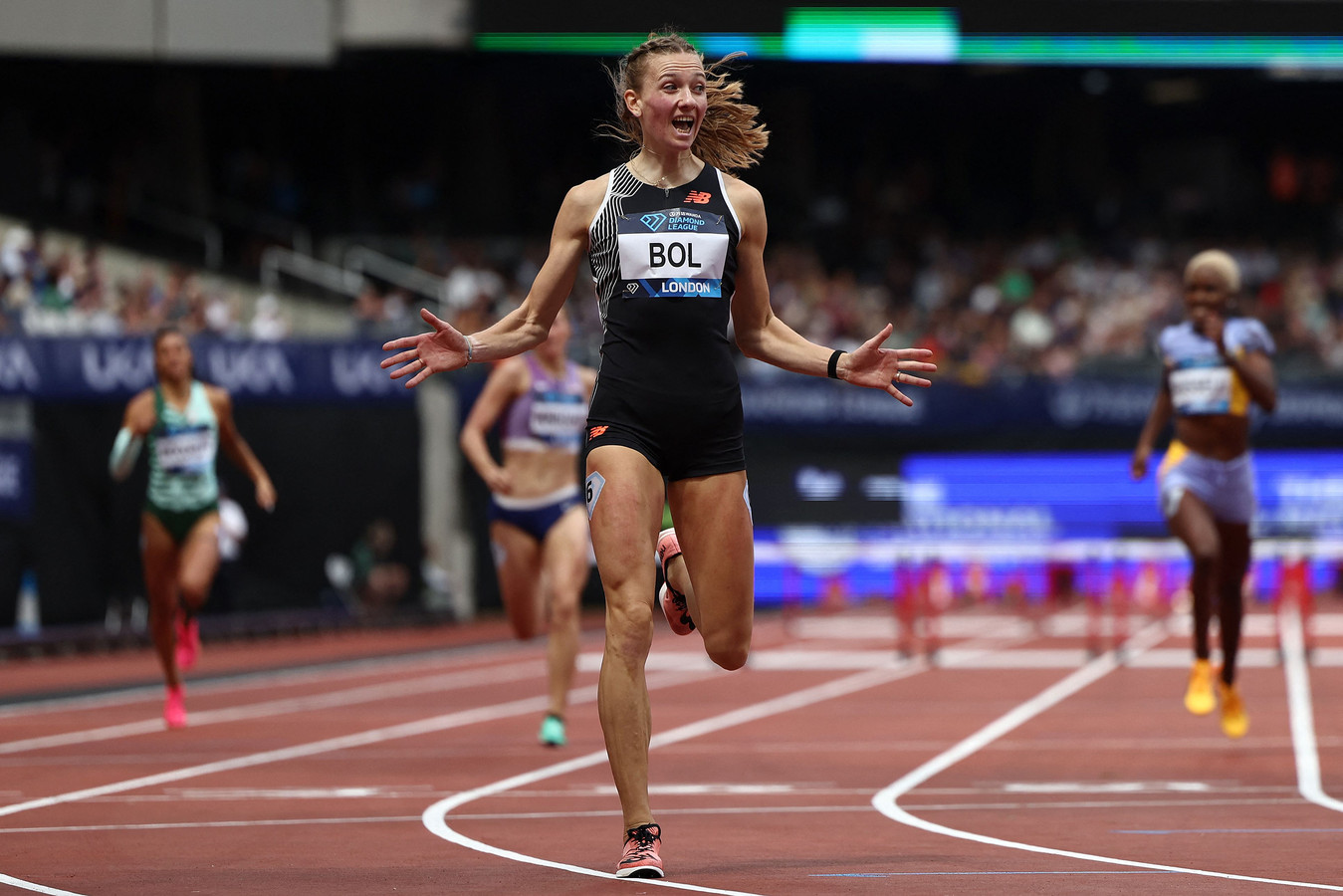 Femke Bol verpulvert Europees record op 400 meter horden in Londen 'Dit stadion is echt bizar