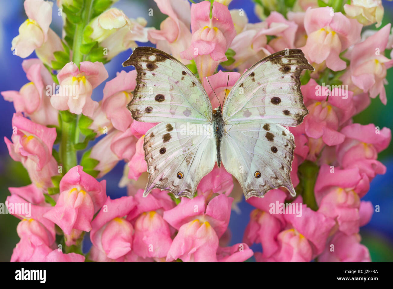 Protogoniomorpha parhassus, Forest Mother-of-Pearl. Leeds Museums & Galleries. United Kingdom. The Mother-of-Pearl butterfly gets its name from the spectacular colouration of the upper wings. In the dry-season, they appear pearly white with black tips and red eyespots. When the wet-season arrives, their wings take on a more greenish-white with.
