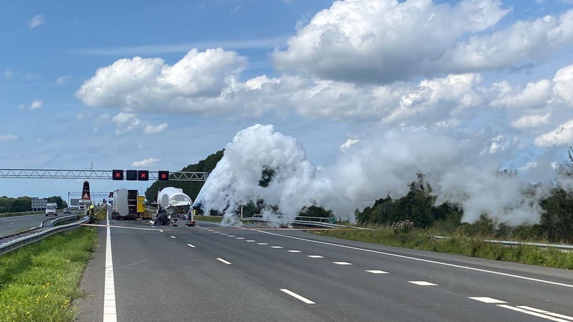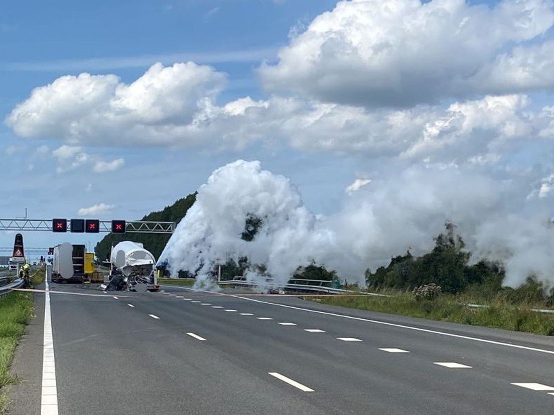 Gekoeld stikstof uit kapotte tankwagen op A29 'gecontroleerd' de lucht in geblazen na botsing