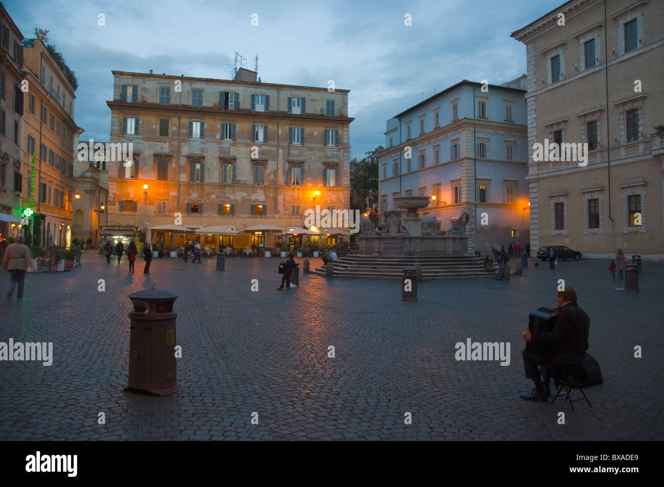 Busker at Piazza Santa Maria in Trastevere square at dusk Trastevere district Rome Italy Europe