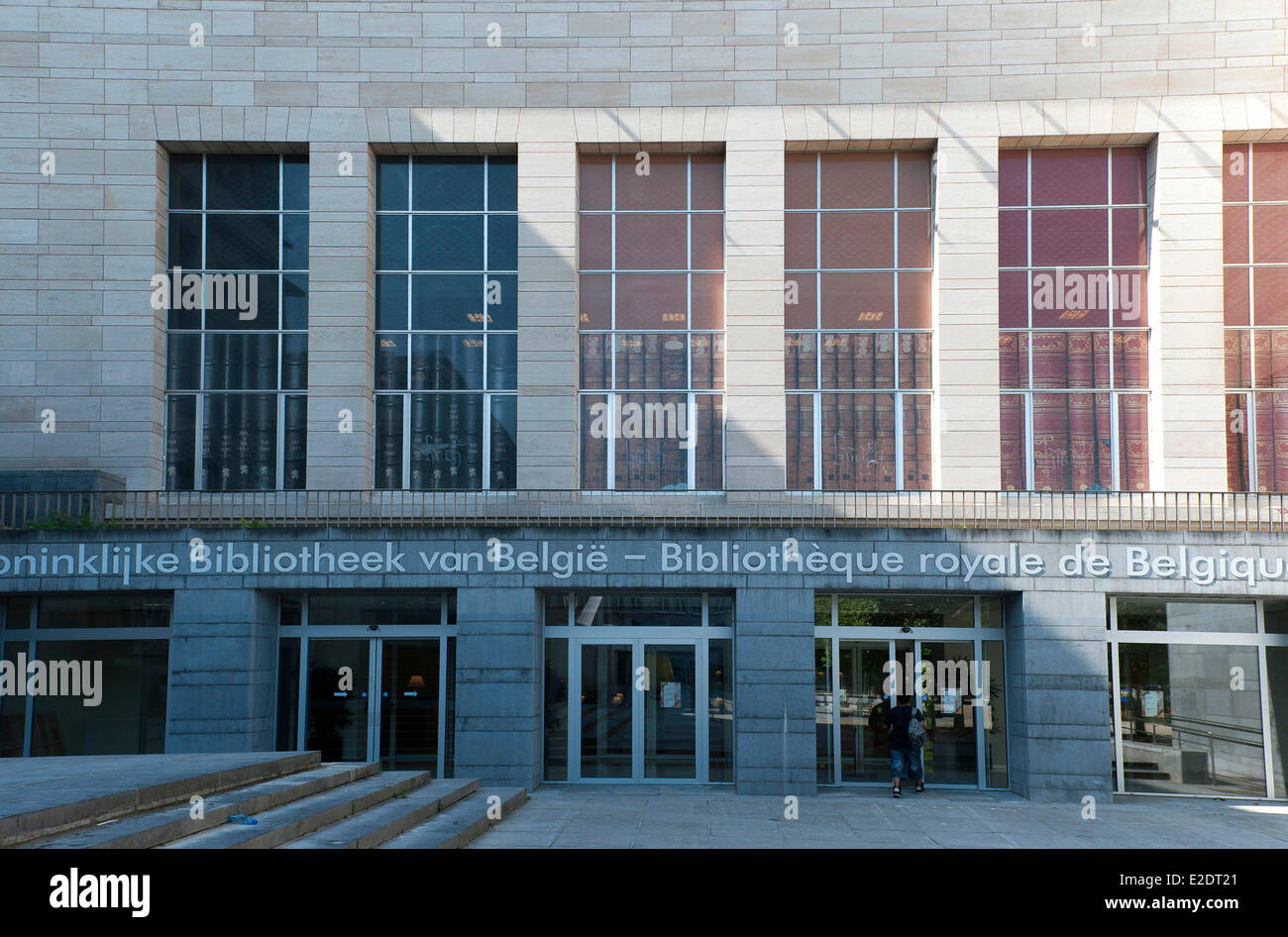 Brussels, Belgium. Entrance to the Royal Library of Belgium, down town capital, Stock Photo